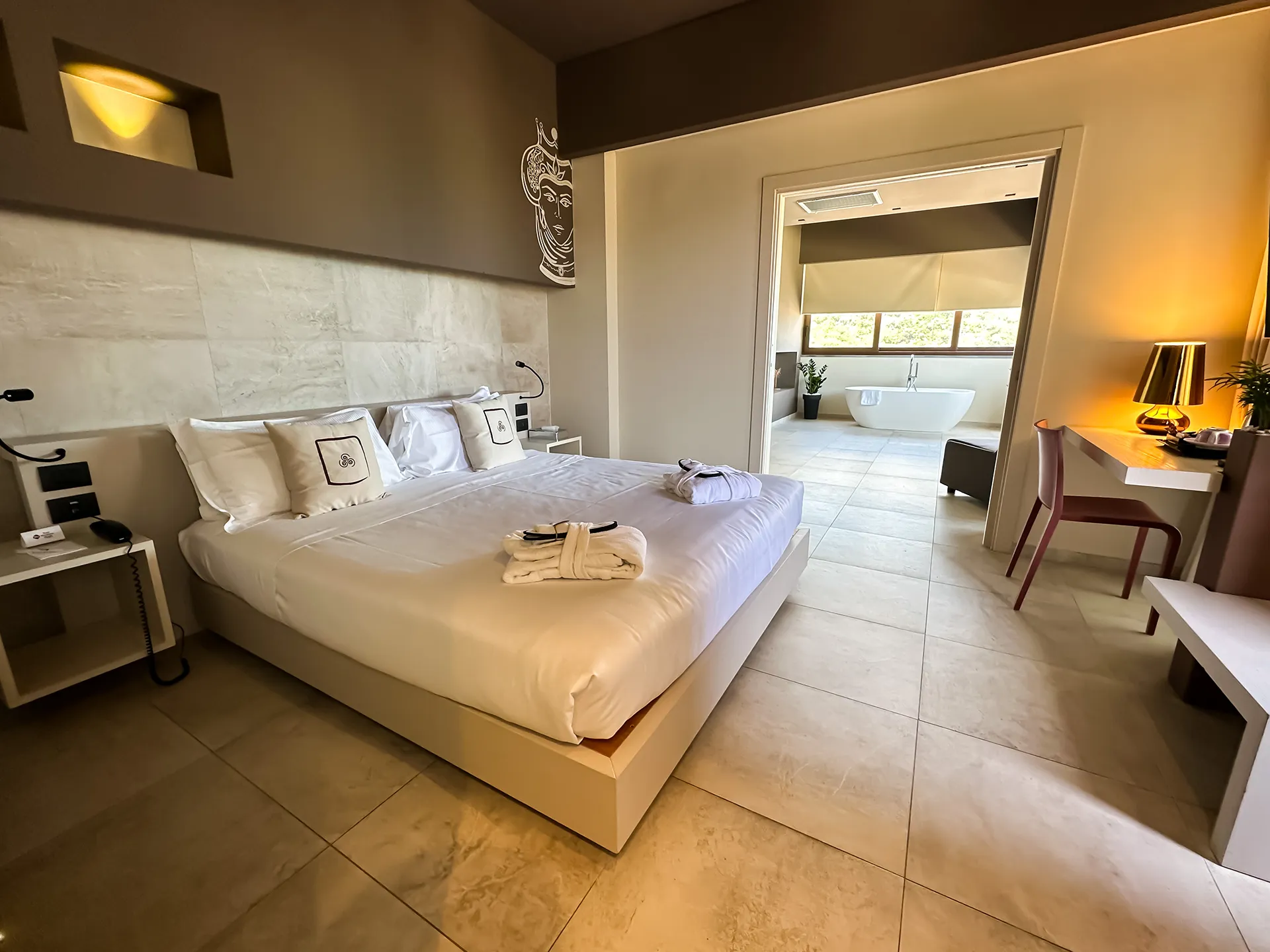 L’albergo dispone di 67 camere climatizzate, confortevoli e accoglienti, divise tra vista mare e collina, di cui 2 junior suite con mini piscina privata e 2 suite con vasca da bagno in camera da letto.