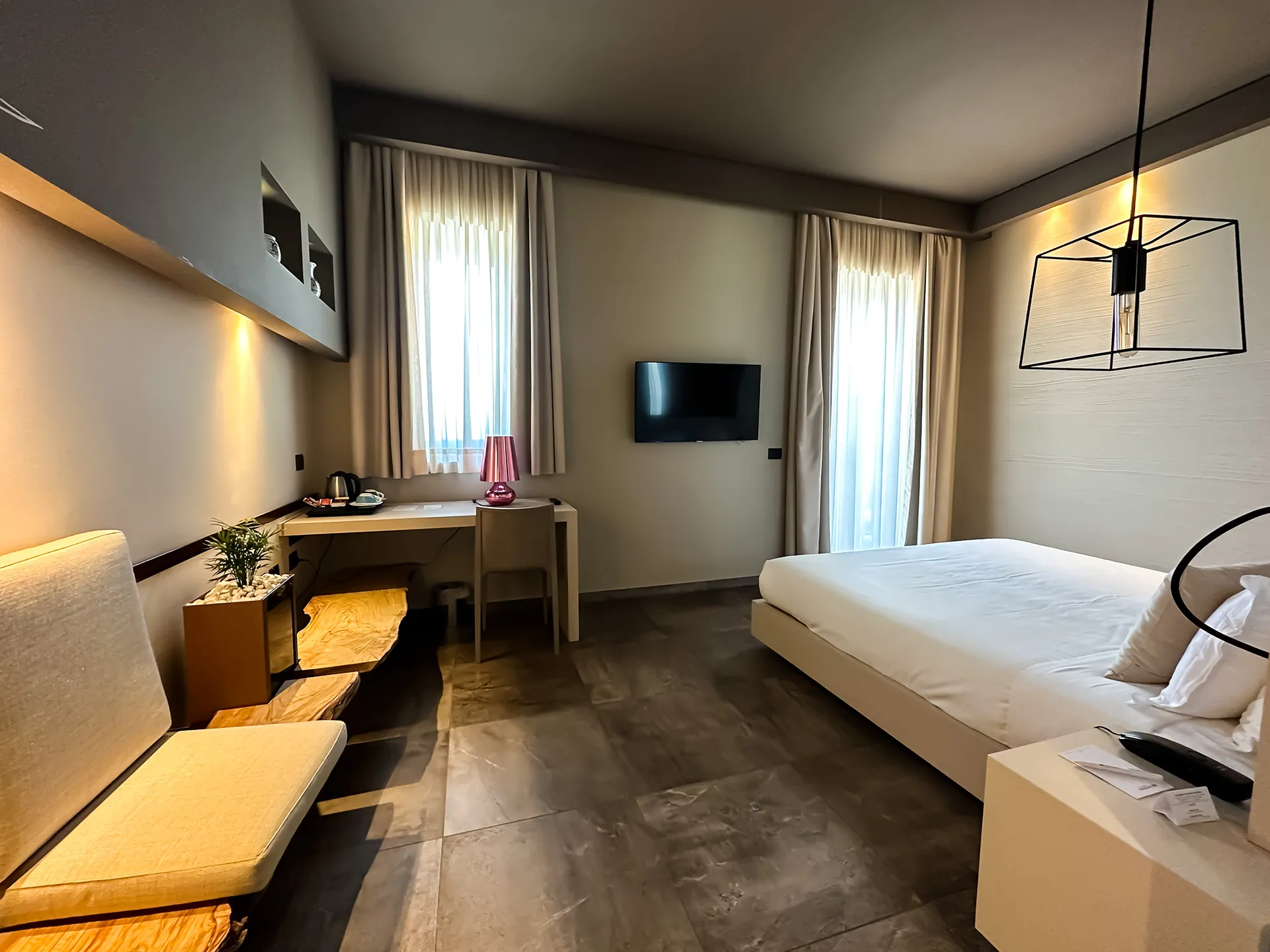 Sono tutte dotate di balcone o terrazzino con sedie e tavolino, perfetti per vivere momenti di tranquillità all’aria aperta ammirando il panorama.