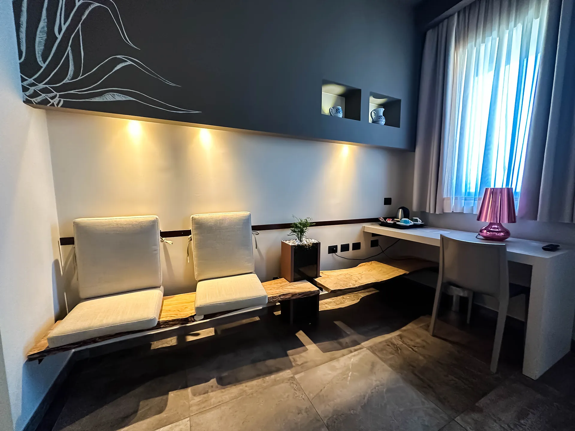 Le Camere Superior (22 mq) offrono tutte una splendida vista mare, regalando un risveglio unico sull’arcipelago delle Isole Eolie. Disponibili sia ai piani alti, per godere di una prospettiva ancora più ampia e panoramica, sia ai piani bassi, con un affaccio piacevole e rilassante. Le camere ai piani alti, grazie alla posizione privilegiata e alla vista più ampia, prevedono una tariffa differenziata rispetto a quelle situate ai piani bassi.